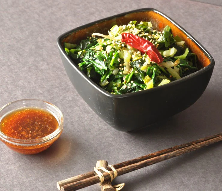 Una ensalada fresca y crujiente que combina el sabor suave de las algas Wakame con el toque picante de la guindilla. Esta ensalada es un festín de sabores y texturas que te transportará directamente a la costa de Japón.